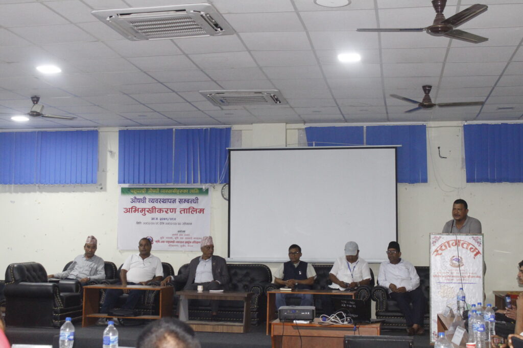 कार्यक्रमका प्रमुख अतिथि एवं भुमि व्यवस्था तथा सहकारी मन्त्रालयका मन्त्री भिम प्रकाश शर्माले व्यवसायिको माग अनुरुप संघिय सरकारसंगको समन्वयमा प्राविधिक ज्ञान सहित तालिम संचालन गरिएकाले तत्काल औषधि व्यवस्था विभागले लिने लाइसेन्सको परिक्षाका लागि सम्बन्धित निकायसंग समन्वय गरी आवश्यक पहले गर्ने प्रतिवद्धता व्यक्त गरे । तालिम संचालनका हुने क्रममा निष्पक्ष रुपमा सहभागि छनौट गरिएको भन्ने केहि पक्षका कुरामा केन्द्रित रहदै तालिमसंग सम्बन्धित हरेक कुराहरु निती सम्बत भएको र सवैलाई क्रमिक रुपमा समेटेर तालिम संचालन गर्ने योजना रहेको हुंदा हतारिएर बिरोध नगर्न समेत सवै व्यवसायिलाई अनुरोध गरे ।