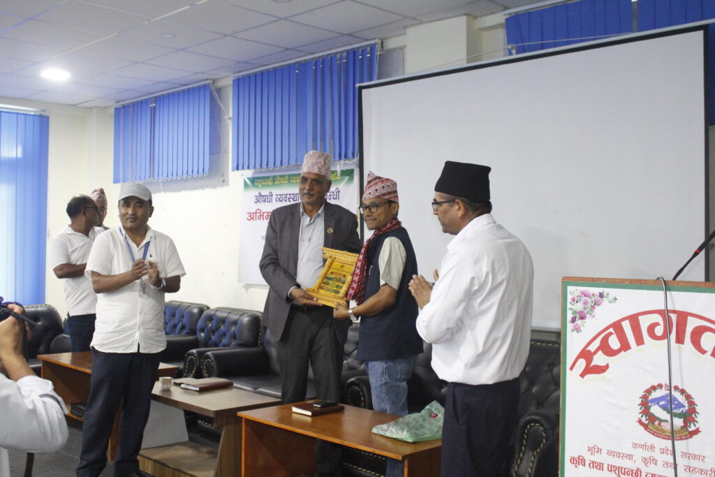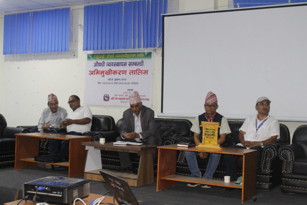 भुमि व्यवस्था कृषि तथा सहकारी मन्त्रालय, कर्णाली प्रदेश, सुर्खेतको मातहतमा रहेको कृषि तथा पशुपन्छी व्यवसाय प्रवद्र्धन प्रशिक्षण केन्द्रले आफ्नो वार्षिक कार्यक्रम अनुसार कर्णाली प्रदेशका विभिन्न जिल्लामा एग्रोभेट व्यवसाय संचालन गरिरहेका र पशुपन्छीको औषधि विक्रेताको इजाजत नभएका व्यवसायीलाई केन्द्रित गरी संचालन गरेको अभिमुखीकरण तालिमको आज एक कार्यक्रमको आयोजना गरी समापन गरिएको छ । कर्णाली प्रदेशका ७ वटा जिल्लाका विभिन्न पालिकाबाट ३० जना सहभागि भएको उक्त तालिम जेठ २८ देखि असार २९ गते सम्म संचालन गरिएको थियो ।