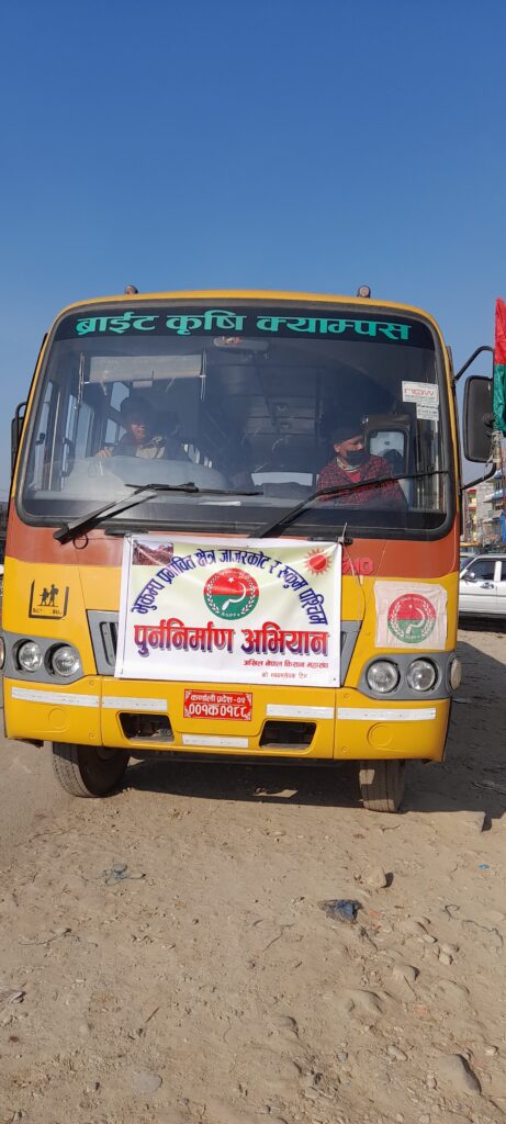 अखिल नेपाल किसान महासङ्घ केन्द्रिय कमिटिको अगुवाइमा गत कार्तिक १७ गते जाजरकोटमा गएको भुकम्पका कारण भएको भौतिक क्षतिको पुनर्निर्माण कार्यका लागि १५८ जनाको टोलि जाजरकोटको भेरी नगरपालिका, छेडागाड नगरपालिका र बारेकोट गाउपालिकामा खटिएको छ ।